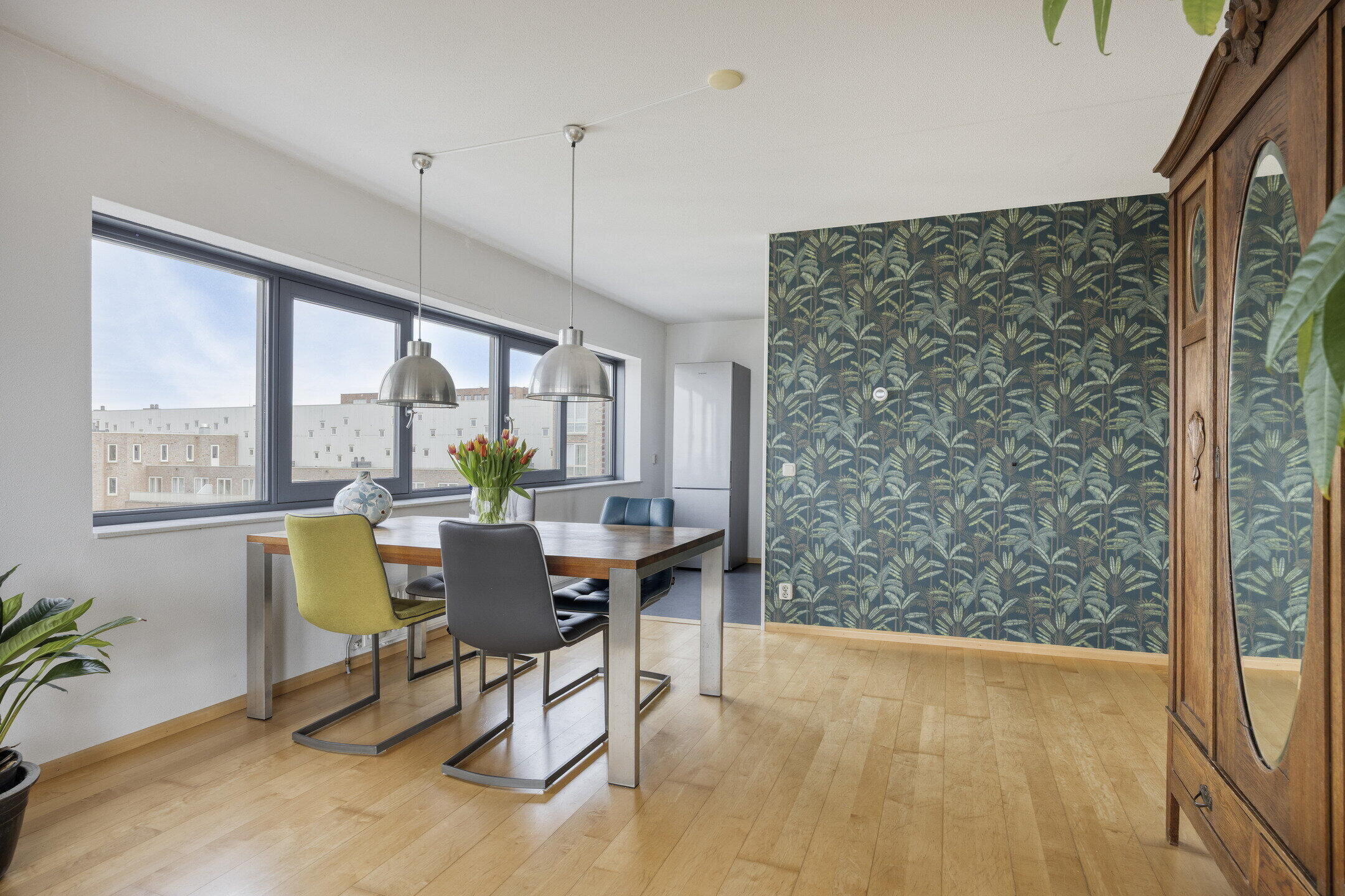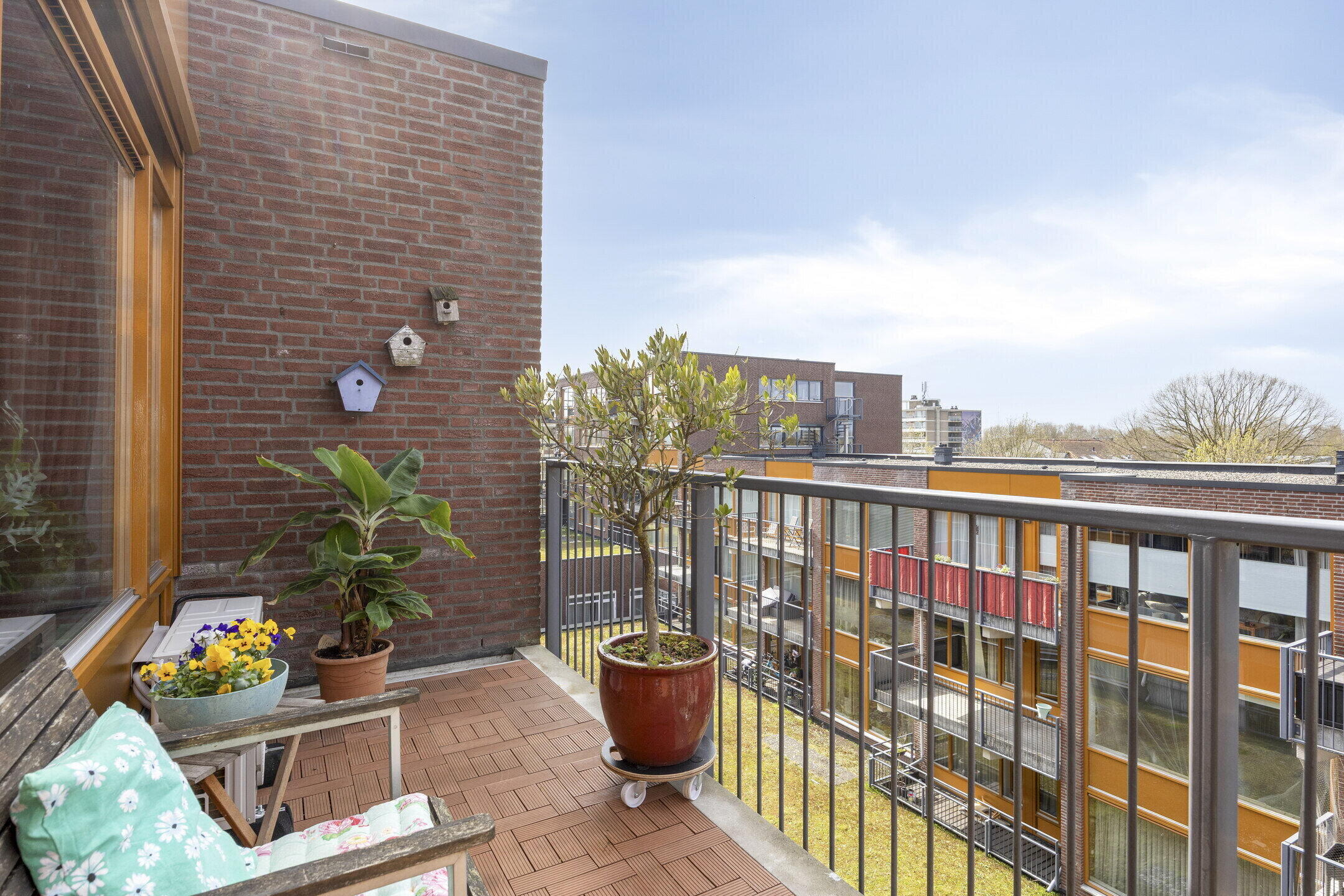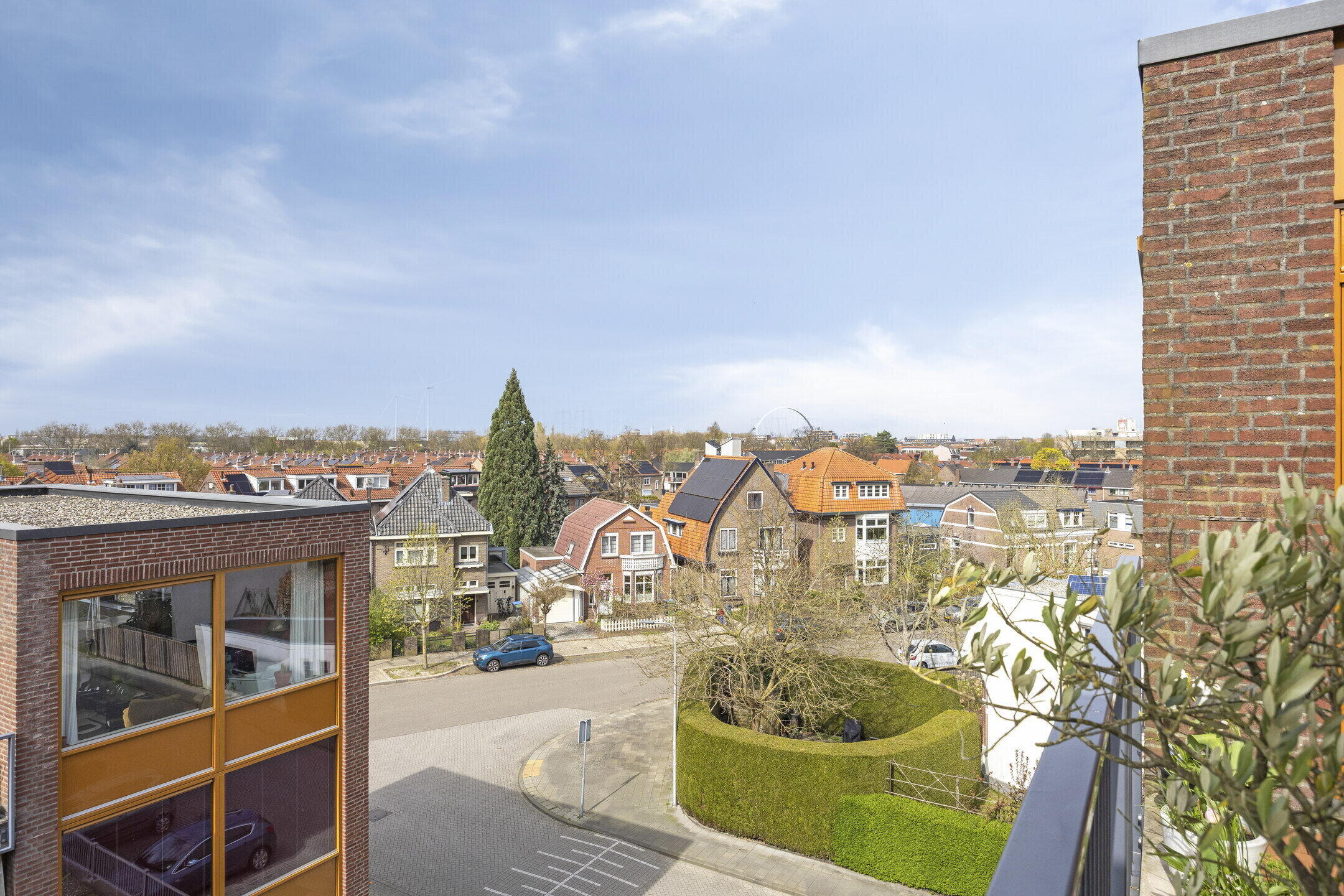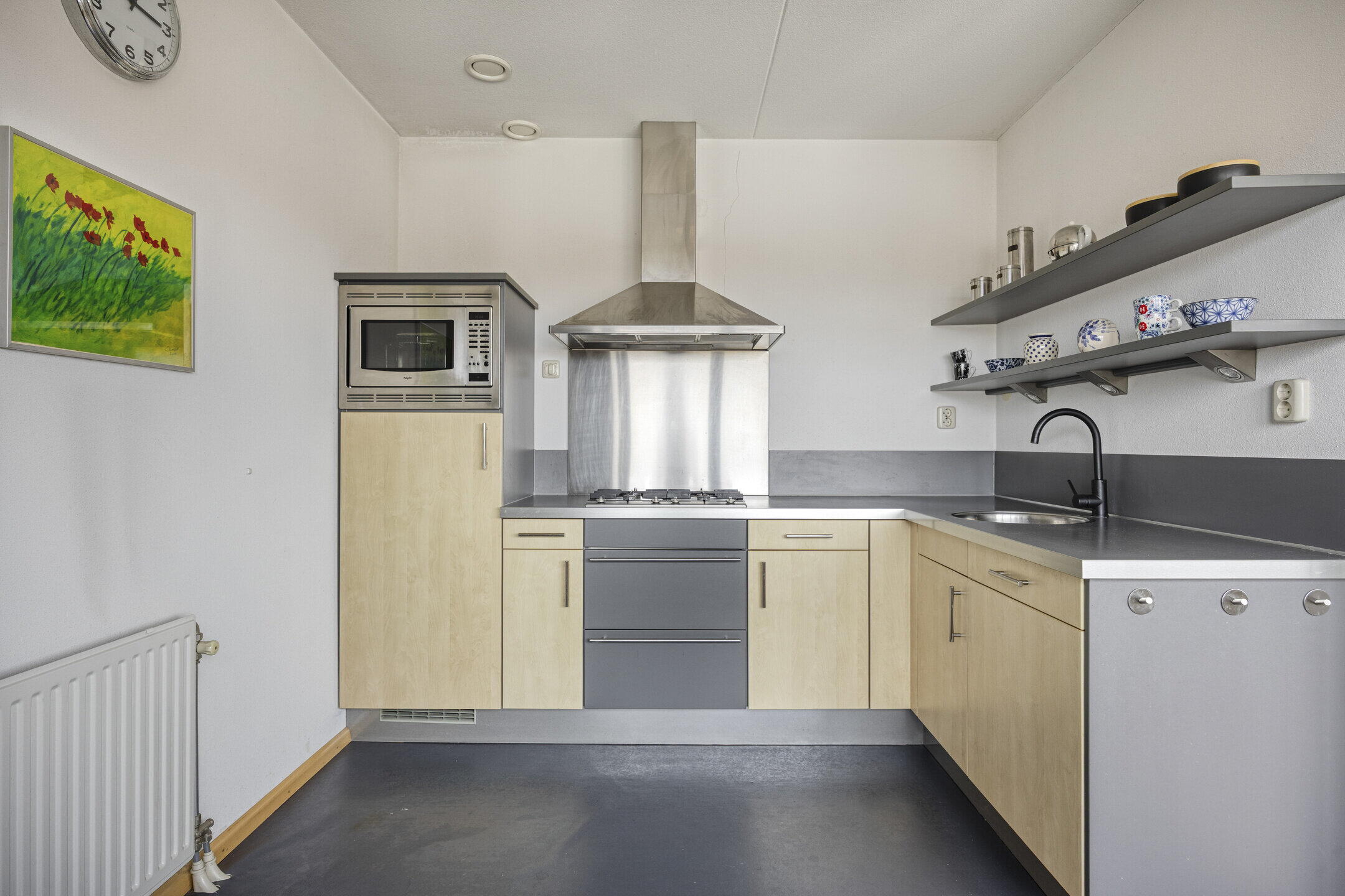 Woonkamer met door de hoekligging en veel extra raampartijen, vrij uitzicht over een groot deel van de stad. Aansluitend het balkon met middag en avondzon; halfopen keuken met hoekinrichting voorzien van ingebouwde 4-pits gaskookplaat, afzuigkap, combioven en vaatwasser.
