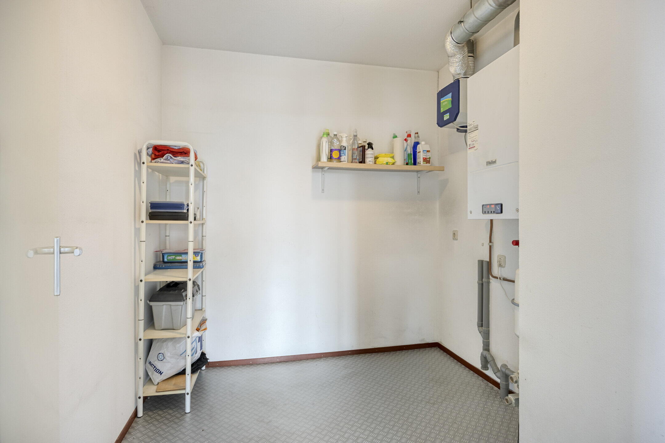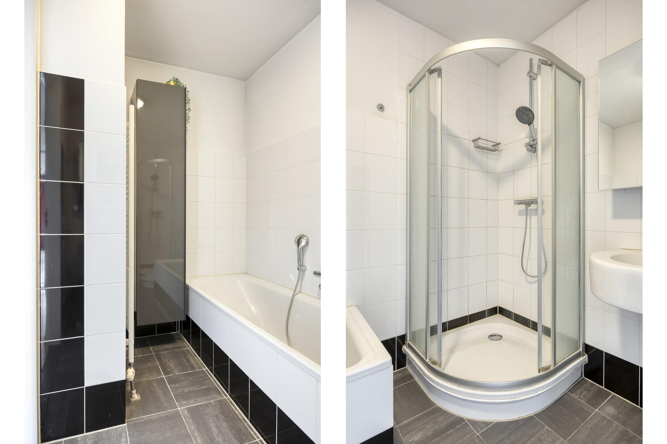Er zijn twee slaapkamers van 15 en 9 m²; badkamer met ligbad, douche, wastafel én designradiator; inpandige berging met opstelling cv-ketel, aansluitingen witgoed, de box van de mechanische ventilatie en veel opberg- en provisieruimte.