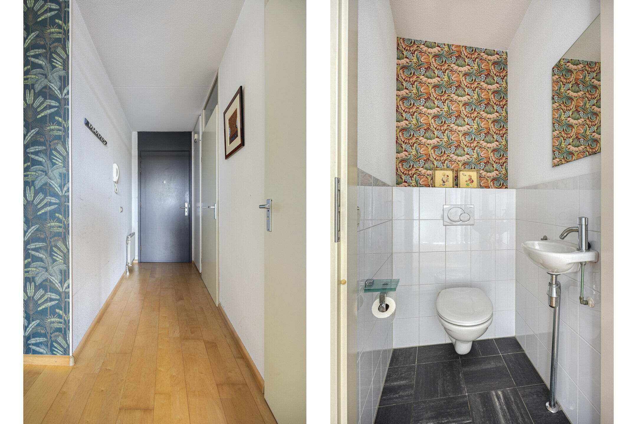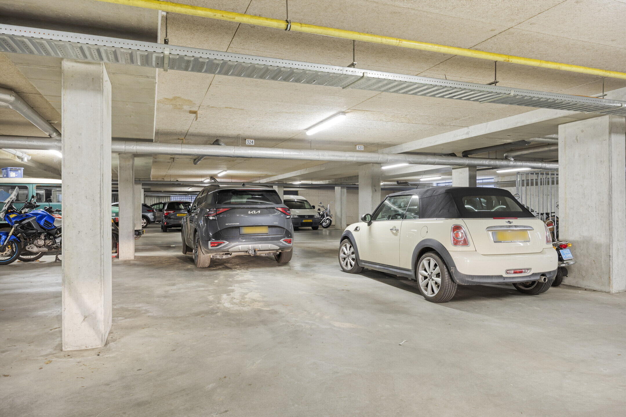 Maar er is meer, je parkeert je auto op je eigen vaste plek in de onder het complex gelegen parkeergarage én er is een gemeenschappelijke fietsenstalling. Het appartement is uitgerust met een separaat toilet, uitgebreide badkamer én een halfopen keuken met ingebouwde apparatuur.